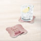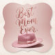 This is a Luxe Best Mum Ever Rose Gold Coaster. The rose gold design was created with generative art. The art features a pink rose gold woman's hat with a pink ribbon. The hat is on a pink rose gold background. Best Mum Ever is in rose gold script above the hat. The coaster is a bracket coaster. The coasters are in a set of 6 pulp board coasters.
