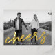 Modern foil holiday postcard featuring your horizontal photo with "Cheers" displayed in a handwritten gold foil script overlay. Personalise the front of the holiday photo postcard with your name in white lettering. The postcard reverses to display your return address and custom message.