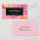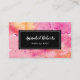 Pink, purple and orange watercolour business card featuring realistic paint textures for the creative professional, suitable for a make-up artist, interior designer, artists, producers, wedding industry professionals and other arty types. Include your social media handles as well or simply delete the icons that aren't needed.
