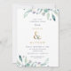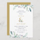 Affordable custom printed wedding rehearsal dinner invitations personalised with your event details. This elegant design features a faux gold foil ampersand with delicate blue and green watercolor foliage on a white background. Use the design tools to customise the text, edit the fonts and colours or add your own photos to create a modern minimalist party invitation.
