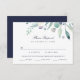 Affordable custom printed wedding RSVP cards with simple boho watercolor greenery. Personalise the design with your wedding RSVP info and meal options for guests. Use the design tools to customise the text, choose any background colour and edit the fonts and colours to create your own unique wedding reply card design. Reverse side features a navy blue background or use the space to add additional text or photos if needed. This beautiful modern botanical design is perfect for any season.