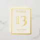 This luxe 4.25" x 5.6 (post card size) wedding table numbers features a bold yet elegant and delicate uneven golden frame; its simplicity and minimal details makes it elegant and sophisticated. Customisable ecru background to match your wedding theme and style. All typography in real gold foil is customisable for you to personalise each wedding table number.