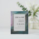 A beautifully luxurious contemporary abstract pattern of marbled ink wash texture in jewel tone hues of teal, purple, pink and black form the background of this artistic wedding Save the Date Card. Personalise the text template with your desired text. A matching suite of wedding products is available in this modern design.