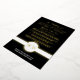 Choose these elegant black and white with real gold foil wedding program cards for a luxurious look at your ceremony. These order of service cards combine the classic look of a double monogram on the white band and seal design at the bottom along with a mix of fonts that lends an airy modern feel to the wedding program layout. Easy to customise, each text field is a template so you can create the perfect program. In addition to the real gold foil text areas on the front, these order of service wedding cards reverse to reveal a large text template area with a simple white font on black where you can add additional details for your wedding guests. Create your own luxe monogrammed wedding programs in black, white and gold foil printing, customised and printed just for you, for a beautiful addition to your wedding day stationary suite.