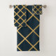 LUXE NAVY ABSTRACT GOLD GRID BATH TOWEL SET