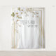 Grace your celebration with refined beauty and serene sophistication. This customisable wedding backdrop features cascading white orchids delicately draped over soft, champagne-toned fabric, framed by subtle gold linework that adds a hint of glamour. The spacious central area is perfect for adding personalised names, dates, or a meaningful phrase, creating an elegant focal point for your ceremony or photo area. Ideal for classic, romantic, or luxury-themed weddings.