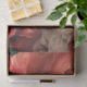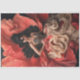 Luxe Poppy Plumes Portrait Bouffant Couture, Coral red, beige and black, digital art Decoupage tissue paper.