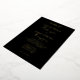 With real gold foil on a solid black background, this wedding invitation is luxe! The options to change the foil to silver or rose gold are available. The contemporary script font, sits in the middle of the invitation, while a sans serif text makes up the rest of the invite. A blank black canvas makes up the back of the card.
