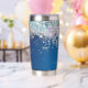 Luxe teal blue with holographic silver glitter insulated tumbler. Personalise it easily with your initial and name. Simply click the "Edit Using Design Tools" button to modify the text, wording, font style, font size, and font colour. Makes a unique personalised gift.