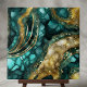 Transform your space with the opulent beauty of this abstract fluid art design. This mesmerizing artwork features a rich, swirling blend of deep teal, turquoise, and emerald green tones that mimic the organic elegance of natural agate stone and geode crystals. The composition is elevated by intricate, shimmering liquid gold veins and cellular textures, creating a stunning visual depth that resembles high-end alcohol ink art.