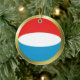 Both sides of this ornament feature the flag of Luxembourg morphed into a circle with a golden rim. Simple Luxembourg decoration for your home.