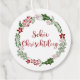 Green and red Christmas holiday wreath gift tags with the words Merry Christmas in Luxembourgish: Schéi Chrëschtdeeg.
