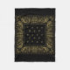 Luxurious black and gold Pailsey design bandana style fleece blanket.