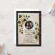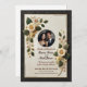 • This exquisite wedding invitation showcases a stunning black leather-textured border paired with intricate floral embellishments in soft gold and cream tones. The design includes a space to showcase a personal photo of the couple, making it a memorable keepsake.