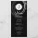 This modern menu features your family initial inside an artistic silver ring surrounded by light grey wispy brush strokes overlaid on a midnight black background. A great choice for your urban wedding. Add your menu details by clicking the customise link. This is part of a collection with matching napkins, table number cards and other wedding essentials.