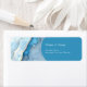 This wedding return address label features a luxurious blue watercolor background with soft pearlescent wave textures, creating a dreamy and elegant aesthetic. The blend of dusky aqua tones and subtle white accents evokes a serene, ocean-inspired feel. Fluid marble-like details add depth and sophistication, making it perfect for a modern, artistic, and whimsical wedding theme. The overall look is timeless yet contemporary, ideal for those who appreciate refined, coastal-inspired artistry.
