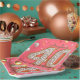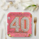 This customisable 40th birthday paper plate features a stunning, three-dimensional '40' crafted from an elegant bed of white pearls, outlined in a metallic gold that gleams against a vibrant pink background. Golden confetti and floating white balloons add a touch of festive motion. This isn't just a plate; it's a personalised piece of art that sets a dazzling tone for her special day.