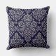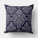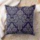 Luxurious Damask Floral Pattern on Very Deep Blue Cushion