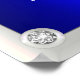 A very elegant royal blue wedding welcome poster featuring a luxe theme of diamonds and pearls. There is a faux pearlised frame around the outside, with more pearls and diamonds, with strings of pearls hanging down from above.