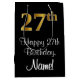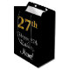 This elegant, luxurious, and stylish birthday giftbag design features a large ordinal number “27th” having an imitation/faux gold-like look, in addition to the birthday greeting message “Happy 27th Birthday,” and a personalised recipient name in a script-style font. It also has a black-coloured background. A sophisticated gift-bag like this might be used when giving a gift or present in honour of somebody’s twenty seventh birthday. [~Z0000514]