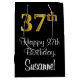 This sophisticated, luxurious, and elegant birthday giftbag design features a large ordinal number “37th” having an imitation/faux gold-like look, in addition to the birthday greeting message “Happy 37th Birthday,” and an editable recipient name in a script-style font. It also has a black-coloured background. A luxurious gift bag like this might be used when giving a gift or present in honour of somebody’s 37th birthday. [~Z0000514]