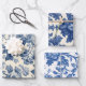 Luxury powder blue French toile pattern in intricate fine engraved florals. These designs have aristocratic detailing and toile de Jouy engraving. The artwork uses premium European textile design, delicate botanical etching and soft powder-blue inking details. The wrapping paper sheets contain 3 patterns that are perfect for gift wrapping, DIY projects and crafts.