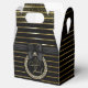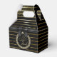 An elegant ending touch for gifts with thankful action on any occasion such as this luxurious box with crystals and ornamental ribbons and golden stripes with elegant black background.