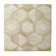 A sophisticated seamless geometric pattern ceramic tile featuring a grid of interlocking hexagons outlined in metallic gold. Each hexagon contains elegant linework and subtle geometric details, set against a softly textured cream and beige marble background. The blend of warm neutrals and gold accents gives this design a modern, refined, and luxurious feel.