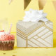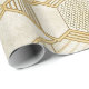 A sophisticated seamless geometric pattern wrapping paper featuring a grid of interlocking hexagons outlined in metallic gold. Each hexagon contains elegant linework and subtle geometric details, set against a softly textured cream and beige marble background. The blend of warm neutrals and gold accents gives this design a modern, refined, and luxurious feel.