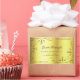 Make a lasting impression with this elegant and modern product label design featuring pretty squiggled gold ornate corners with cute hearts on a luxury shimmery golden coloured background.