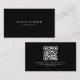 Luxurious, refined business card template with customisable QR code and modern sans serif font. The black and white business card design is on-trend, classic, and sure to make your business stand out. This elegant business card template is easy to customise by adding your logo and business information. Use this business card template to easily direct clients to your website.