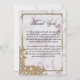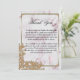 You can show your appreciation and thank your family and friends for their support and love on your wedding day with this elegant gold pearls and pink marble wedding thank you card. The design consists of a classically elegant pink marble pattern, framed in a gold metallic border with pearls in the corners. There is a decorative lace corner of flowers and petals which is also embedded with tiny pearls at the bottom.