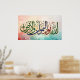 The script shines with metallic tones of gold, emerald green, and deep sapphire blue, elegantly floating over a stunning abstract background of soft oil-painted textures. This premium artwork is perfect for modern Muslim homes, prayer rooms, or as a sophisticated gift for housewarmings, weddings, and Eid celebrations."