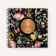 Glam girly chic professional business or personal sketch and ideas journal notebook featuring a chic pastel wildflower meadow pattern and a copper brass gold circle label over moody black background. +++++++++++++ Personalise it with your name and text on both covers! ++++++++++++++++++++++ Perfect for home interior designer, beauty salon manager or owner, hair stylist, makeup artist, fashion stylist | decorator | designer | architect | boss lady | lifestyle blogger.