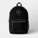 Beautiful and glamourous backpack design featuring a luxury black background with an organic pattern of silver sparkles.