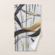 Elevate your bathroom with this sophisticated three-piece towel set featuring a bold black-and-gold abstract line design. Flowing metallic-inspired curves layered over fine linear detailing create a striking modern pattern that feels both artistic and luxurious. The coordinated set includes a bath towel, hand towel, and wash cloth, making it perfect for adding a refined, contemporary touch to everyday routines or for gifting to lovers of modern home décor and spa-style elegance.