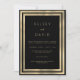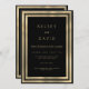 A luxury black and gold geometric frame elegant wedding. This minimalist design features a lovely and elegant simple geometric gold border design on a black background. Customise this design with your message and personalised information. All designs are printed.