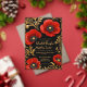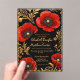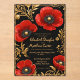 This luxury black, red, and gold floral wedding invitation features an opulent botanical design with rich red poppy-style flowers and elegant gold baroque accents on a deep black background. The dramatic contrast and refined ornamental details create a sophisticated and timeless aesthetic, perfect for formal and upscale weddings.