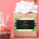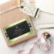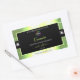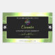 The design features a noble shimmering light green frame with fine decor lines, on a plain black background.