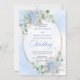 Make your special day unforgettable with this elegant watercolor wedding invitation, thoughtfully designed to shine with Zazzle’s premium print quality. Featuring soft pastel blue hydrangeas, delicate eucalyptus and greenery foliage, and a refined gold glitter oval frame, this invitation blends timeless romance with modern sophistication.