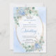 Make your special day unforgettable with this elegant watercolor wedding invitation, thoughtfully designed to shine with Zazzle’s premium print quality. Featuring soft pastel blue hydrangeas, delicate eucalyptus and greenery foliage, and a refined gold glitter oval frame, this invitation blends timeless romance with modern sophistication.