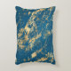 Elegant rich blue marble texture pillow with faux gold foil veins.