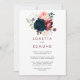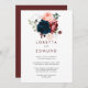 This luxury boho colourful floral back and front wedding invitation is perfect for a rustic wedding. The design features elegant watercolor blue, burgundy, pink and blush flowers with green foliage.