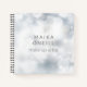 Chic and elegant notebook featuring a silver bokeh illustration personalise with two lines of custom text beneath.
