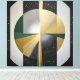 Elevate your space with this high-luxury abstract art. Circular shapes in brushed gold, deep green, and black create a sophisticated and celestial atmosphere. Golden particles add stellar shine. Perfect for modern decor and premium branding.