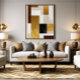 A geometric composition of golden and brown cubes that interlock perfectly. The minimalist and elegant art reflects wealth and sophistication, making it a perfect piece of art for modern environments.