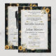 This invitation features a rich black background with green, yellow, and gold floral elements, creating a royal yet minimalist European-style wedding card.
