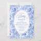 Luxury Deep Blue Toile Roses Baby Shower Invites