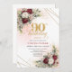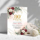Luxury Deep Red Floral Gold 90th Birthday Invite