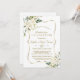Elegant card design featuring watercolour delicate white flowers and green leaves, a faux gold frame, floral divider, on a white background. On the back white flowers bouquet. Use Personalise tool to add your info, change fonts, font's colours. For matching items, please, visit my Delicate White Flowers Collection.